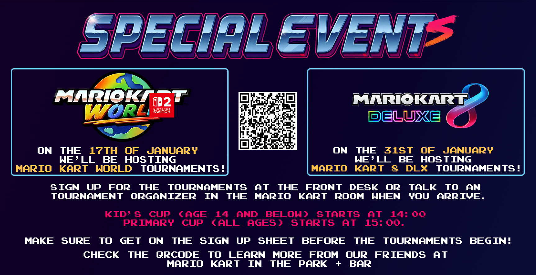 This saturday the 17th we’re hosting another Mario Kart World Championship starting at 14h. Deze zaterdag de 17e is er weer een Mario Kart world toernooi vanaf 14u.!